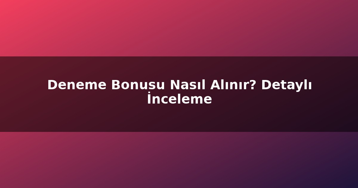 Deneme Bonusu Nasıl Alınır? Detaylı İnceleme